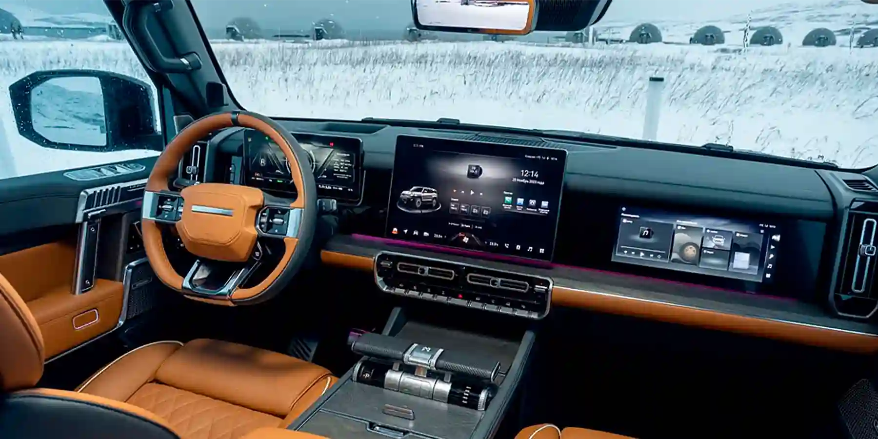 Помимо датчиков глубины брода, внедорожник оснащен камерами кругового обзора с функцией «прозрачного капота», а также умной системой распознавания препятствий. Стереокамера под лобовым стеклом непрерывно сканирует дорогу перед машиной, передает картинку бортовой нейросети, а та распознает тип грядущей неровности и заранее подстраивает подвеску, чтобы максимально эффективно погасить удар. То же самое с внедорожными режимами: M-Hero понимает, на каком покрытии находится, и автоматически выбирает алгоритмы управления тягой, блокировками дифференциалов и вспомогательными системами.