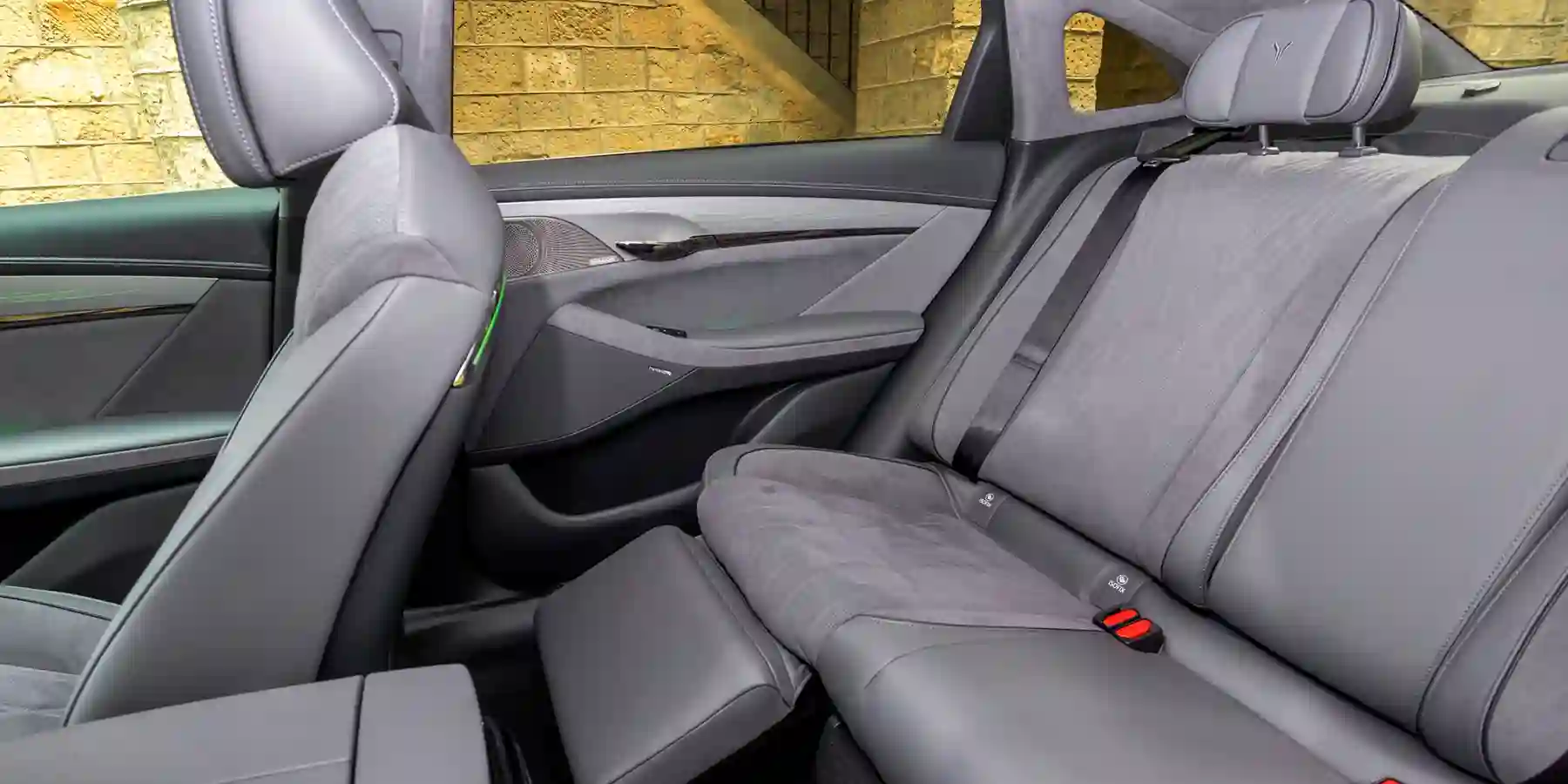 Но стоит откинуть массивный центральный подлокотник и свайпом разблокировать ещё один «потайной» семидюймовый тачскрин, как оказывается, что сзади в Passion два раздельных кресла с индивидуальными электрорегулировками, массажем, вентиляцией, подогревом и своими зонами климат-контроля! Боссу, разумеется, адресована правая сторона — здесь вдобавок имеются раскладная подушечка для ног (тоже с сервоприводом) и возможность одним касанием сдвинуть сиденье переднего пассажира.